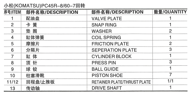 小松挖掘机主泵系列