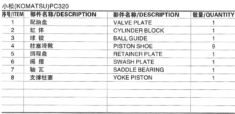 小松挖掘机主泵系列