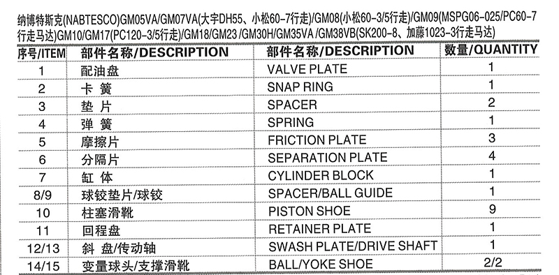 小松挖掘机主泵系列